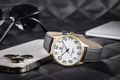 Ten zegarek to prawdziwy symbol elegancji, łączący w sobie luksus złotej koperty z nowoczesnym stylem białej tarczy. Złota koperta emanuje prestiżem, a kontrastujące czarne indeksy oraz fluorescencyjne wskazówki dodają mu nowoczesnego charakteru, gwarantując doskonałą widoczność w każdych warunkach.