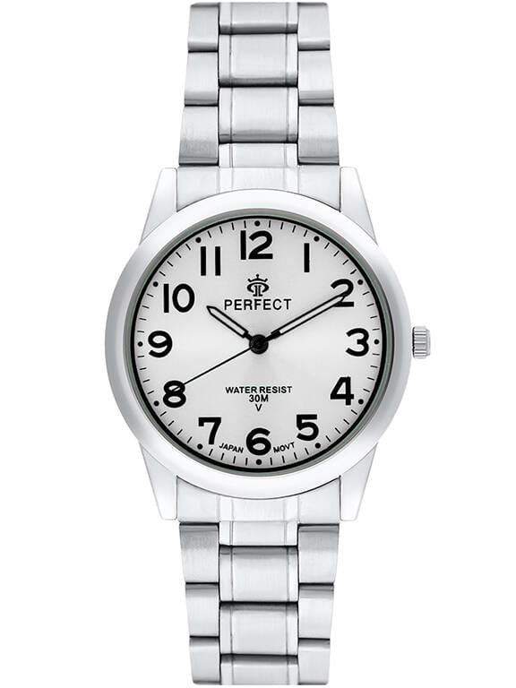 Marka: Perfect Mechanizm: Kwarcowy Tarcza: Analogowa Koperta: Wysokogatunkowa stal Szkiełko: Mineralne Bransoleta: Stal szlachetna- regulowana Podświetlenie: Fluorescencja Wodoszczelność: 3 ATM