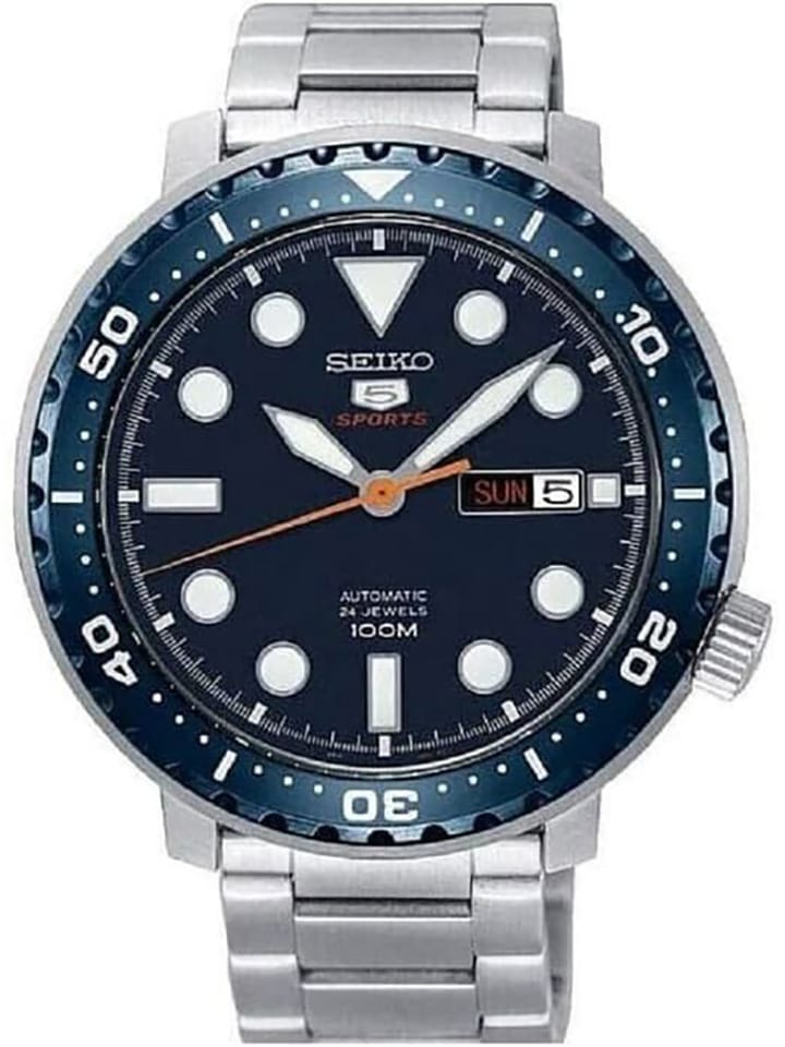 Zegarek Męski Seiko 5 Sports Automatic SRPC63K1 to idealny wybór dla mężczyzn szukających sportowego, a zarazem eleganckiego zegarka na co dzień. Jego koperta została wykonana ze stali nierdzewnej, pokrytej trwałą powłoką PVD, co nadaje jej subtelną odporność na zarysowania. Granatowy cyferblat przyciąga wzrok, a funkcje datownika Day-Date dodają funkcjonalności, umożliwiając wygodne śledzenie dnia tygodnia oraz daty. Wskazówki i indeksy zostały pokryte powłoką luminescencyjną, co zapewnia dobrą widoczność nawet w słabym oświetleniu. Transparentny, zakręcany dekiel nie tylko zwiększa wodoszczelność, ale także umożliwia podgląd pracy mechanizmu. Z kolei zakręcana koronka zwiększa ochronę przed wodą i kurzem. Zegarek oferuje wodoodporność na poziomie 100 metrów, co sprawia, że jest odporny na przypadkowe zamoczenie, a także idealny do pływania. To model, który łączy sportowy charakter z elegancką prostotą, dostosowując się do różnych stylów życia.