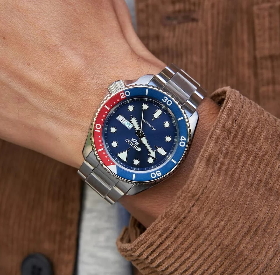 Zegarek Męski Seiko SRPD53K1 to nowa wersja popularnej linii Sports 5, która od ponad 50 lat cieszy się uznaniem wśród miłośników zegarków. Model ten odzwierciedla filozofię, która opiera się na pięciu kluczowych cechach. Po pierwsze, wewnątrz zegarka znajduje się mechanizm automatyczny 4R36, który oferuje funkcję stop-sekundy oraz możliwość nakręcania za pomocą koronki. Rezerwa chodu wynosi solidne 41 godzin. Po drugie, zegarek posiada funkcje datownika, które wyświetlają zarówno dzień tygodnia, jak i miesiąca, co sprawia, że jest to idealny wybór na codzienne użytkowanie. Kolejną cechą jest wodoodporność na poziomie 100 metrów, co czyni go odpowiednim towarzyszem w wielu warunkach. Przeszklony, zakręcany dekiel i obrotowy bezel umożliwiają dokładne odliczanie czasu pod wodą. Z kolei koronka została przesunięta w dół, co zwiększa komfort noszenia, minimalizując dyskomfort przy podnoszeniu ręki. Z kolei wysoka jakość wykonania koperty ze stali nierdzewnej i zastosowanie szkła Hardlex, które jest mniej podatne na pęknięcia niż szafir, ale równie odporne na zarysowania, gwarantują trwałość. W skrócie, Seiko SRPD53K1 to zegarek, który łączy funkcjonalność, wygodę i elegancję, będąc doskonałym wyborem na każdy dzień. Jego klasyczny design nawiązuje do tradycji marki, a jednocześnie jest wystarczająco uniwersalny, by przypadł do gustu szerokiemu gronu użytkowników.