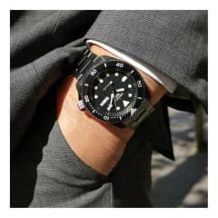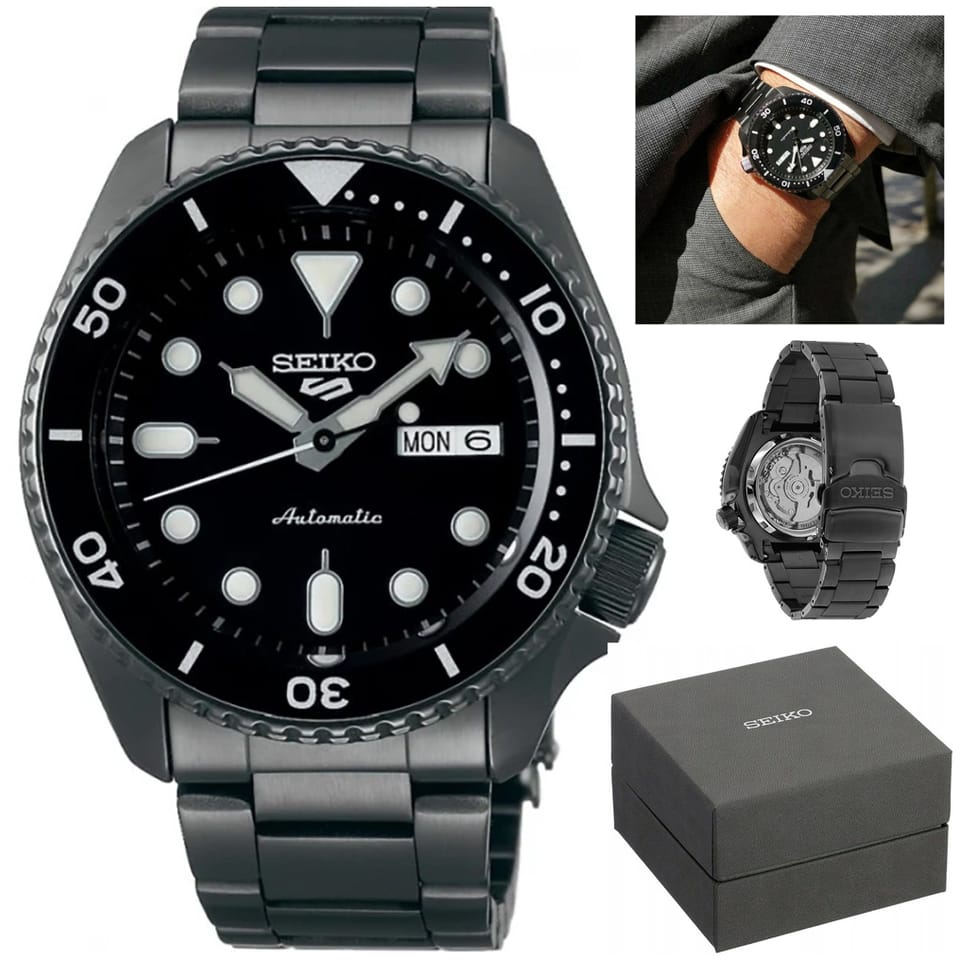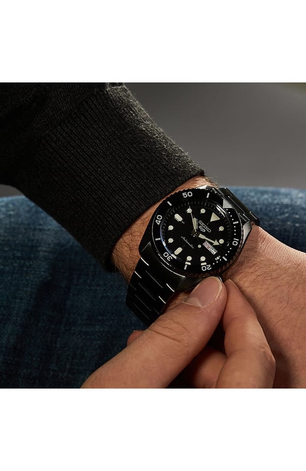 Zegarek Męski Seiko 5 Sports Automatic SRPD65K1 to zegarek, który wyróżnia się nie tylko niezawodnością, ale i wyjątkowym designem. Jego solidna koperta ze stali nierdzewnej w połączeniu z elegancką stalową bransoletą w czarnym odcieniu tworzą klasyczną, a zarazem nowoczesną całość. Centralnym punktem zegarka jest jego elegancki, czarny cyferblat, który z pewnością przyciąga wzrok. Zabezpiecza go mineralne szkło o wzmocnionej twardości. Model wyposażono w funkcje datownika, który wyświetla zarówno dzień tygodnia, jak i miesiąca, obrotowy bezel oraz transparentny, zakręcany dekiel, który pozwala podziwiać mechanizm od środka. Dodatkowo, podświetlenie LumiBrite zapewnia doskonałą widoczność w ciemności. W sercu zegarka znajduje się japoński mechanizm automatyczny Seiko 4R36, który oferuje precyzję chodu w zakresie od +45 do -35 sekund dziennie i umożliwia ręczne nakręcanie. Zegarki z najnowszej serii Seiko 5 Sports wyróżniają się jeszcze większą dokładnością niż ich poprzednicy. Zegarek oferuje również wodoodporność do 100 metrów, co sprawia, że jest odpowiedni do pływania i nurkowania na mniejszych głębokościach. To model, który doskonale łączy funkcjonalność z charakterystycznym stylem.