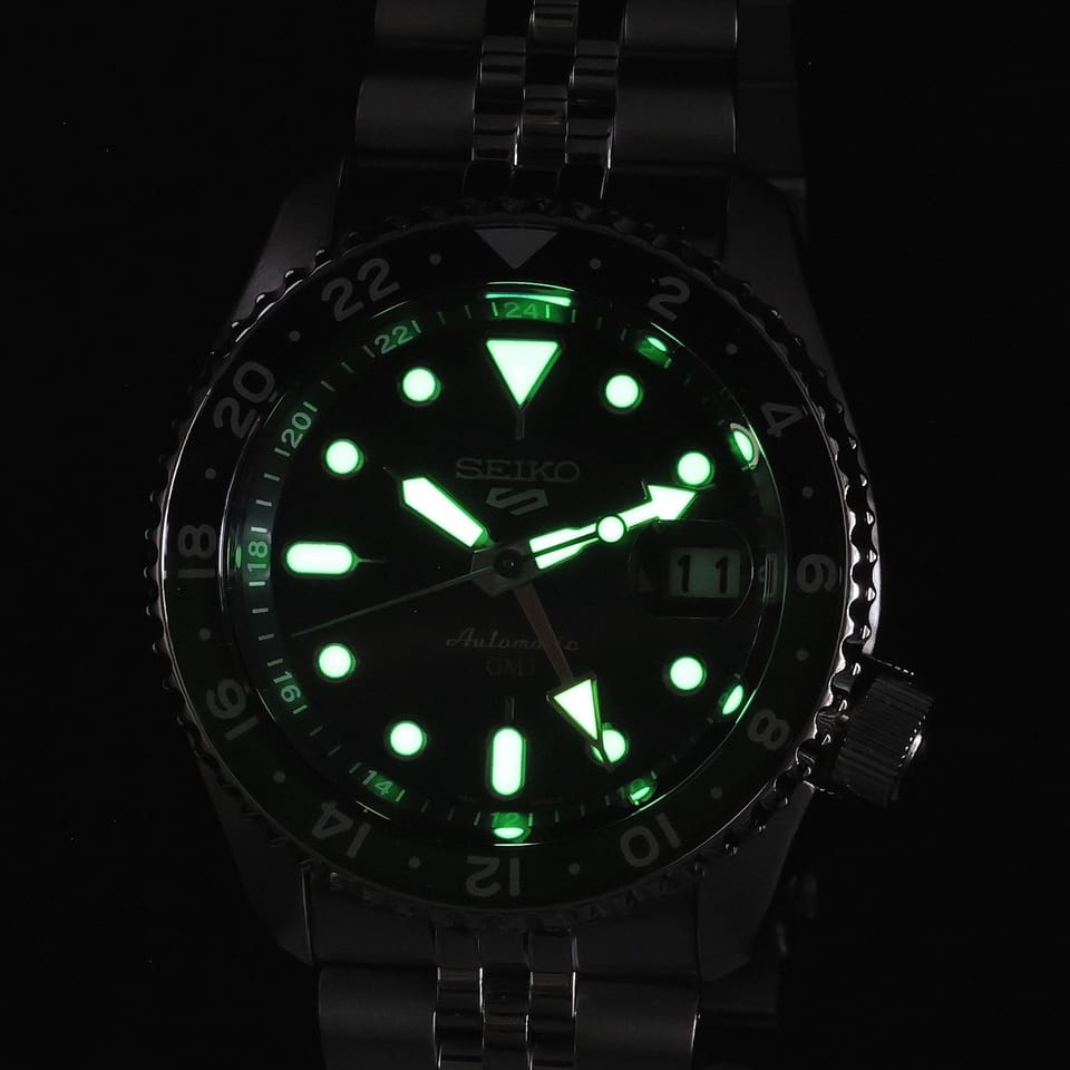 Seiko 5 Sports Automatic GMT SSK035K1 to elegancki męski zegarek automatyczny, który doskonale łączy styl z funkcjonalnością. Srebrna koperta i bransoleta, wykonane z wysokiej jakości stali szlachetnej, nadają mu klasy, a zielona tarcza dodaje nowoczesnego charakteru.Mechanizm Seiko 4R34 z 24 kamieniami oraz 41-godzinną rezerwą chodu zapewnia niezawodną precyzję, a funkcja GMT umożliwia śledzenie czasu w dwóch różnych strefach czasowych