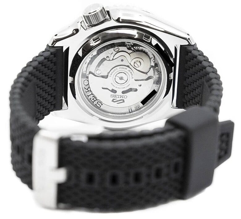 Zegarek napędzany jest niezawodnym mechanizmem automatycznym Seiko 4R36, który oferuje funkcję stop sekundy oraz rezerwę chodu do 41 godzin. Dzięki przeszklonemu deklowi użytkownik może podziwiać pracę mechanizmu, co dodaje dodatkowego uroku temu modelowi. Z kolei wodoszczelność na poziomie 100 metrów (10 ATM) sprawia, że zegarek jest odporny na zachlapania, kąpiele, prysznice, a także umożliwia rekreacyjne nurkowanie.