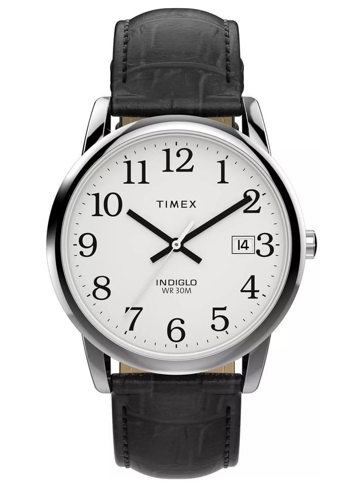 Elegancki męski zegarek TIMEX EASY READER TW2W95400 pasuje idealnie do codziennych stylizacji, jak i na bardziej uroczyste okazje. Na białej czytelnej tarczy umieszczono datownik. Model ten posiada podświetlenie Indiglo oraz czarny skórzany pasek i srebrną kopertę wykonaną z wysokiej jakości stali szlachetnej. Klasa wodoszczelności zegarka to WR30. Podświetlenie tarczy INDIGLO - Specjalny patent na podświetlenie tarczy. Po wciśnięciu koronki lub przycisku funkcyjnego tarcza zegarka zostanie podświetlona od spodu.