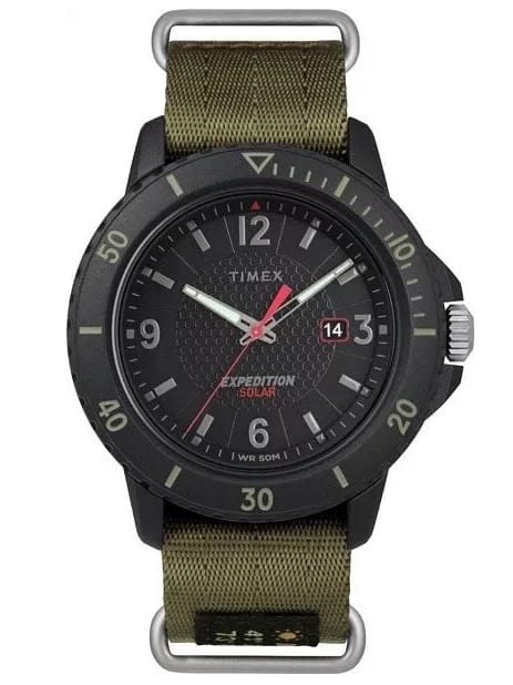 Zegarek sportowy Timex TW4B14500 wyposażony jest w tarczę Solar Analogue - zamiast tradycyjnych źródeł zasilania chód zapewnia bateria słoneczna. Ładuje się ona gdy tarcza zegarka wystawiona jest na działanie światła.