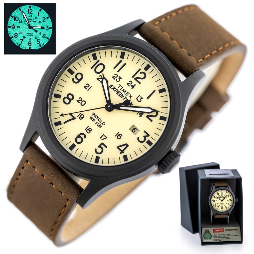 Zegarek Timex Expedition T49963 to męski model, który doskonale sprawdzi się zarówno w sportowych stylizacjach, jak i w codziennym użytkowaniu. Posiada elegancki brązowy skórzany pasek oraz kopertę w odcieniu szarości, wykonaną z mosiądzu o niskiej zawartości ołowiu, co zapewnia trwałość i lekkość. Beżowa tarcza jest czytelna, a jej powierzchnię chroni szkło mineralne, odporne na drobne zarysowania i uszkodzenia. Zegarek napędzany jest precyzyjnym mechanizmem kwarcowym zasilanym baterią. Dodatkowo, model wyposażono w datownik, który wskazuje dzień miesiąca przy godzinie 3, oraz funkcję podświetlenia Indiglo, umożliwiającą łatwe odczytanie godziny w ciemności. Zegarek cechuje się wodoodpornością na poziomie 50 metrów, co zapewnia ochronę przed przypadkowymi zachlapaniami..