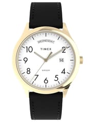 Timex TW2W68500 Modern Easy Reader to elegancki zegarek męski, łączący klasyczny styl z funkcjonalnością. Jego solidna koperta ze stali szlachetnej doskonale współgra z czarnym, skórzanym paskiem, który nie tylko świetnie wygląda, ale także zapewnia komfort noszenia dzięki tradycyjnemu zapięciu na sprzączkę. Jasna tarcza z wyraźnymi cyframi arabskimi gwarantuje doskonałą czytelność, a praktyczny datownik z lupą przy godzinie trzeciej umożliwia szybkie sprawdzenie dnia miesiąca. Dodatkowo, nad godziną 12 umieszczono wskaźnik dnia tygodnia, co czyni ten model niezwykle przydatnym w codziennym użytkowaniu. Tarczę zabezpiecza trwałe, płaskie szkło mineralne. Aby zapewnić lepszą widoczność w warunkach słabego oświetlenia, wskazówki pokryto powłoką neobrite, która po naświetleniu emituje delikatne światło. Precyzja wykonania, klasyczny design i wysokiej jakości materiały sprawiają, że Timex TW2W68500 Easy Reader to idealny wybór zarówno na co dzień, jak i na bardziej formalne okazje.