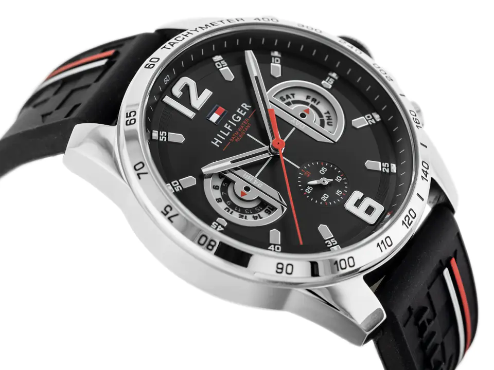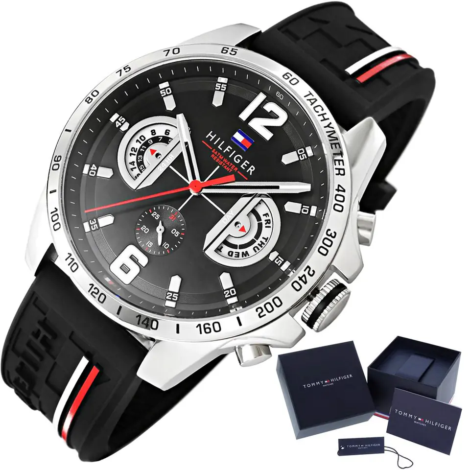 Zegarek męski Tommy Hilfiger 1791473 Decker to doskonała propozycja dla mężczyzn, którzy cenią ponadczasowy, sportowy styl i funkcjonalność. Posiada niezwykle wygodny pasek gumowy w klasycznym czarnym kolorze, który zapewnia komfort noszenia przez cały dzień. Czarna tarcza zegarka jest czytelna i elegancka, a datownik umieszczony przy godzinie 3 pozwala na wygodne śledzenie dnia miesiąca. Zegarek chroniony jest przez szkło mineralne, które zapewnia odporność na zarysowania i drobne uszkodzenia. Model charakteryzuje się wodoodpornością WR50, co oznacza, że jest odporny na zachlapania oraz krótkie kontakty z wodą, ale nie nadaje się do pływania. Tommy Hilfiger 1791473 Decker to idealny wybór dla mężczyzn, którzy szukają zegarka łączącego sportowy wygląd z codzienną funkcjonalnością.