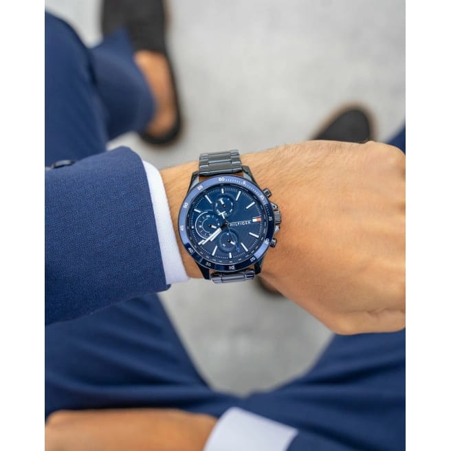 Zegarek Tommy Hilfiger 1791720 to stylowy i nowoczesny dodatek dla mężczyzn ceniących klasyczny design z nutą sportowego charakteru. Jego głęboka granatowa kolorystyka nadaje mu eleganckiego wyglądu, a stalowa koperta i bransoleta podkreślają solidność wykonania. Na tarczy znajdują się subtarcze wskazujące dzień tygodnia, datę oraz czas w formacie 24-godzinnym, co czyni ten model nie tylko estetycznym, ale i praktycznym wyborem na co dzień.