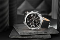 Srebrna koperta otacza głęboką, czarną tarczę, gdzie kontrastujące biało-czarne indeksy nadają zegarkowi wyrazistości i nowoczesnego charakteru. Srebrne wskazówki oraz sekundnik z odważnym, czerwonym akcentem wprowadzają dynamiczny pazur, a czarny skórzany pasek idealnie dopełnia całości, tworząc dodatek, który pasuje zarówno do garnituru, jak i casualowego looku. Subtelne czerwone akcenty na subtarczu chronografu nadają zegarkowi Tommy Hilfiger Ashton dynamicznego, sportowego charakteru. Te detale przyciągają uwagę, podkreślając wyjątkowy design i precyzję wykonania.