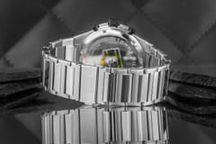 Wykonana z doskonałej stali nierdzewnej, łączy surową trwałość z luksusowym wykończeniem, które robi wrażenie na każdym kroku. Jej solidna konstrukcja to nie tylko gwarancja niezawodności, ale także pewność, że zegarek będzie leżeć idealnie, niezależnie od tego, co przyniesie dzień. Precyzyjne zapięcie z wytłoczonym logo dopełnia całości, dodając nutę klasy i wyjątkowego charakteru. To bransoleta, która mówi "siła" i "styl" jednym, zdecydowanym ruchem. Prestiż zegarka podkreśla dyskretne logo na zapięciu bransolety.