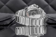 Wykonana z doskonałej stali nierdzewnej, łączy surową trwałość z luksusowym wykończeniem, które robi wrażenie na każdym kroku. Jej solidna konstrukcja to nie tylko gwarancja niezawodności, ale także pewność, że zegarek będzie leżeć idealnie, niezależnie od tego, co przyniesie dzień. Precyzyjne zapięcie z wytłoczonym logo dopełnia całości, dodając nutę klasy i wyjątkowego charakteru. To bransoleta, która mówi "siła" i "styl" jednym, zdecydowanym ruchem. Prestiż zegarka podkreśla dyskretne logo na zapięciu bransolety.