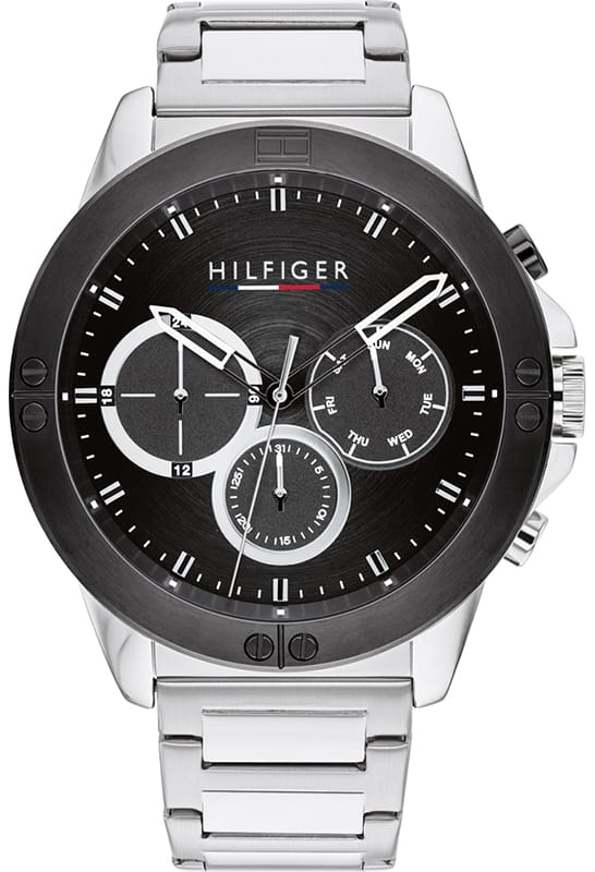 Tommy Hilfiger Harley 1791890 to zegarek, który swoją nazwą nawiązuje do symbolu niezależności i wyjątkowego stylu, jaki kojarzy się z legendarnym duchem Harley'a. Jego design emanuje męską elegancją, łącząc głęboką czerń tarczy z lśniącym srebrem koperty i bransolety, co nadaje mu ponadczasowy charakter. Wyposażony w funkcjonalne subtarcze, oferujące wskazania dnia tygodnia oraz czas w formacie 24-godzinnym, doskonale łączy praktyczność z nowoczesnym stylem.