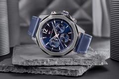 Srebrna koperta mocno osadza całość, eksponując metalicznie granatową tarczę o wyjątkowej głębi. Srebrne indeksy i wskazówki to klasyka w najlepszym wydaniu, stworzona, by przyciągać spojrzenia z precyzją i pewnością siebie. Sekundnik w srebrno-białej tonacji dodaje mu subtelnej dynamiki, niczym akcent prędkości na sportowym zegarze. Całość spina granatowy pasek — solidny, stylowy i tak samo niezawodny jak skórzana kurtka, która nigdy nie wychodzi z mody. Granatowy pasek dopełnia kompozycję, nadając jej nowoczesny, a jednocześnie elegancki charakter, który sprawdzi się w każdej sytuacji.