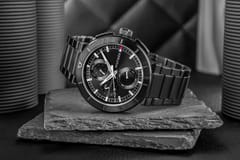 Na tarczy zegarka znajdują się oznaczenia rozbudowanego wskazania daty - dzień miesiąca, dzień tygodnia i czas w systemie 24godzinnym. Chronografy nie tylko wzbogacają funkcjonalność, ale także znacząco zwiększają prestiż tego modelu. Chronograf to jeden z najbardziej pożądanych elementów w zegarkach premium, a jego obecność świadczy o skomplikowanej mechanice i precyzji wykonania. Wskazówki po naświetleniu aktywują swoje luminescencyjne właściwości umożliwiając odczytanie godziny nawet w całkowitym mroku, co jest niezwykle istotne dla aktywnych mężczyzn, którzy nie boją się wyzwań – zarówno w ciągu dnia, jak i nocą.