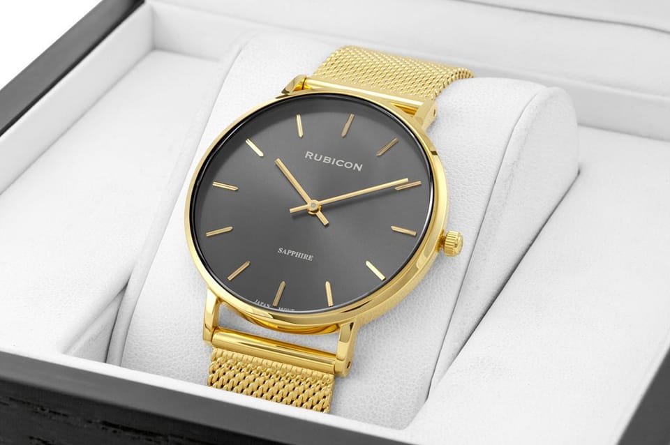 Zegarek Rubicon damski na bransolecie RNBD76 złoty/grafit z pudełkiem