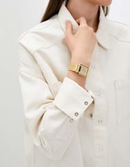 Zegarek wyróżnia się smukłą, złotą kopertą ze stali szlachetnej oraz minimalistyczną tarczą w kolorze złotym z wyraźnymi wskazówkami. Uniwersalny design sprawia, że pasuje zarówno do codziennych, jak i bardziej formalnych stylizacji. Duży, czytelny wyświetlacz cyfrowy z datownikiem harmonijnie łączy się z analogowymi wskazówkami, dodając zegarkowi charakteru i funkcjonalności.