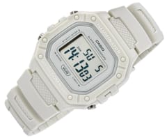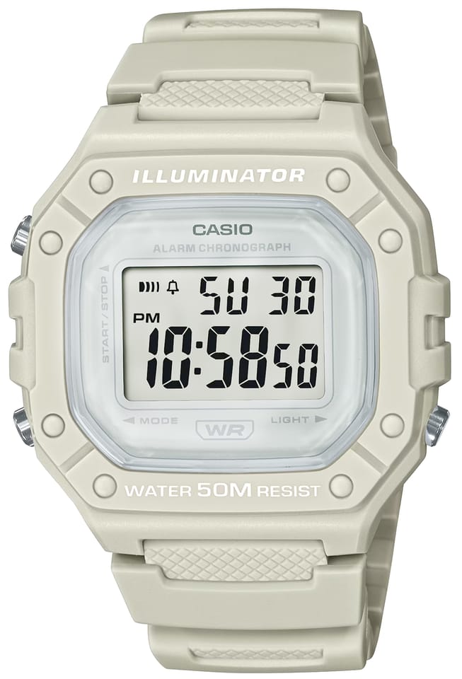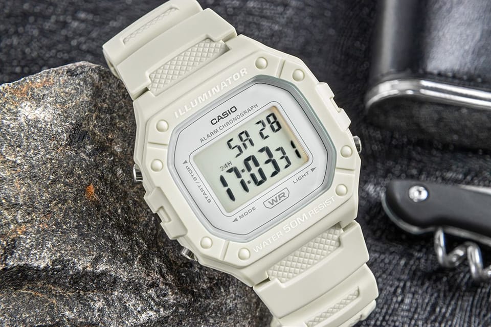 Zegarek Unisex Casio W-218HC-8A to ponadczasowy klasyk, który doskonale sprawdzi się zarówno u kobiet, jak i mężczyzn, łącząc w sobie prostotę, funkcjonalność i sportowy design. Ten model to hołd dla kultowych czasomierzy lat 80., które do dziś zachwycają swoją ciekawą formą i niezawodnością. Jego prostokątna, szara tarcza z wyraźnym wyświetlaczem zachowuje czytelność w każdych warunkach, a subtelny datownik dodaje mu praktycznego charakteru. Lekka koperta z wytrzymałego tworzywa w połączeniu z elastycznym paskiem w kolorze kremowym sprawia, że zegarek jest nie tylko stylowy, ale także niezwykle wygodny w codziennym noszeniu.