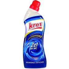 Żel KRET ACTIVE polecany jest do zachowania higienicznej czystości i świeżości muszli WC, bidetów i pisuarów. Receptura żelu została oparta na podchlorynie, skutecznie wybiela, usuwa przebarwienia zacieki, rdzę i inne osady zachowując higieniczną czystość i świeżość.Odpowiednio dobrana konsystencja żelu doskonale rozprowadza się na mytej powierzchni, przedłużając skuteczność działania. Działa samoczynnie nad i pod powierzchnia wody.