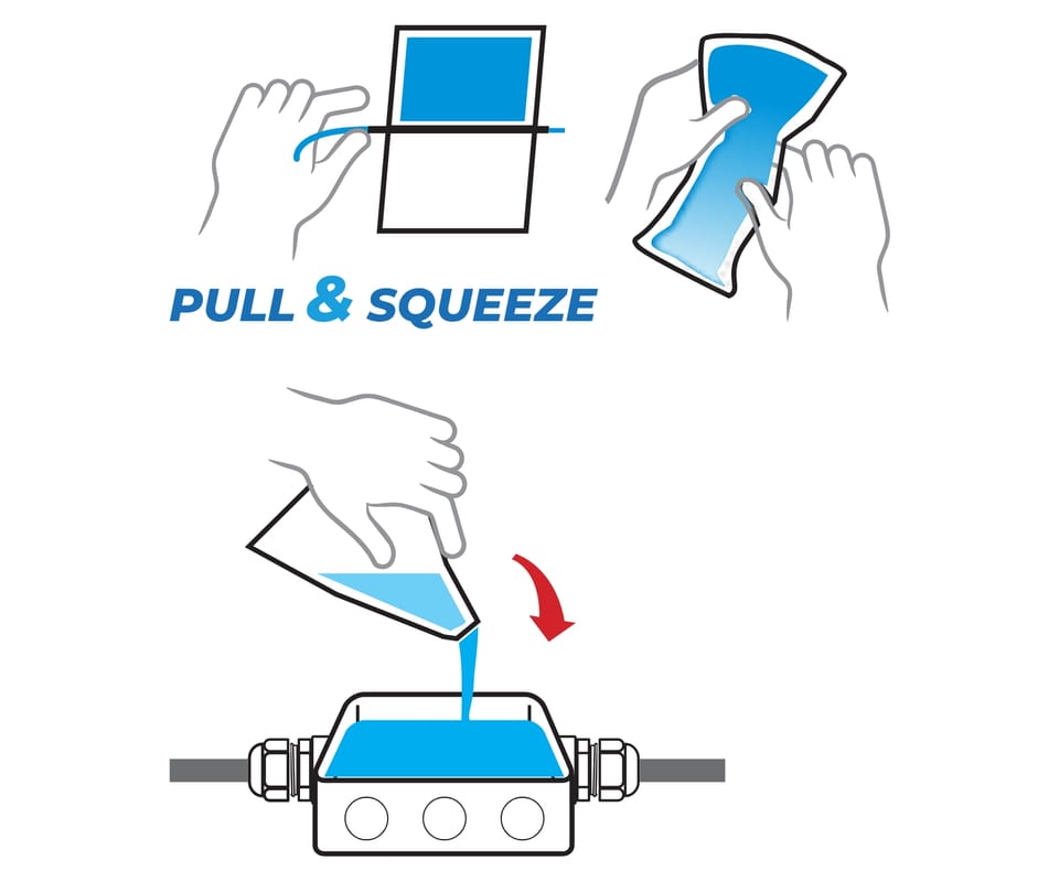 Dwuskładnikowy żel izolacyjny MAGIC-FLUID-90 zapewnia wysoki poziom ochrony przed wnikaniem wody oraz zanieczyszczeń do puszek połączeniowych oraz muf kablowych