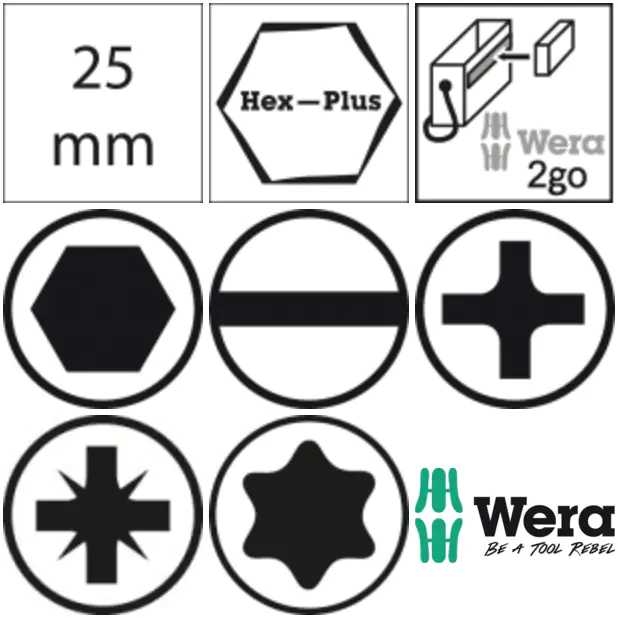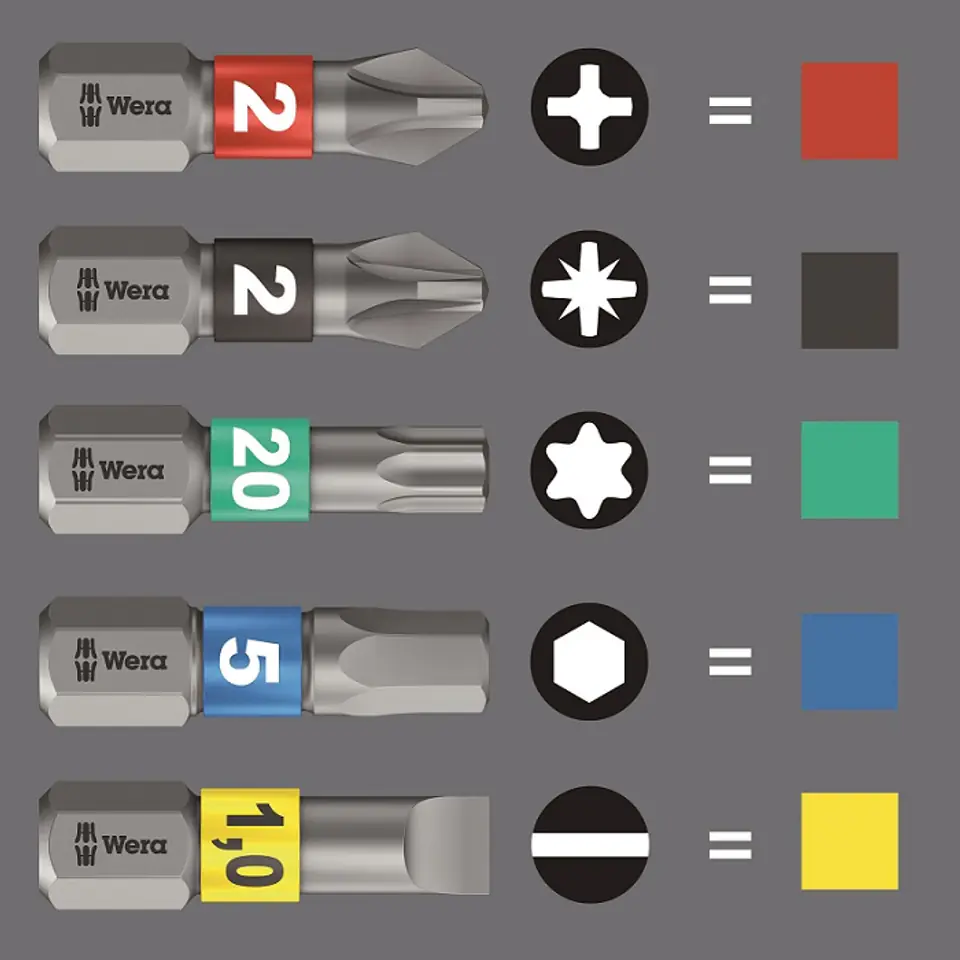 prac w trudno dostępnych miejscach. Do mocowanie bitów 1/4" wg DIN ISO 1173-C 6,3, a także serii Wera 1. Z magnesem stałym
