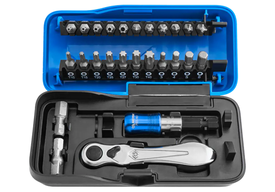 Seria Atom. Składany stojak na bity ułatwia wyciąganie ich. Kieszonkowy rozmiar zestawu. W zestawie bity:1025P - PH1, PH2, PH31025Z - PZ1, PZ2, PZ31025U - T10H, T15H, T20H, T25H, T30H1025H - H3, H4, H5, H6, H81025T - T10, T15, T20, T25, T27, T30, T407702- 25 - UCHWYT TRZPIENIOWY DO WKRĘTAREK 1/4" CALOWY 1/4" x 25 mm 753-63 - MAGNETYCZNY UCHWYT BITÓW DO WKRĘTAREK 1/4" 63 mm Z SZYBKIM ZACZEPEM, 276B-35 – GRZECHOTKA. Wymiary opakowania: 140 x 65 x 36 mm Karta produktu - 1026CQ-AM
