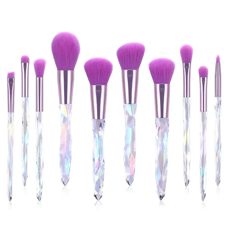Zestaw pędzli do makijażu Spraw sobie nie tylko użyteczny, ale również piękny zestaw pędzli.Aby uzyskać w łatwy sposób wspaniały i efektowny makijaż proponujemy Ci zestaw 10 pędzli do makeup'uW zestawie 6 precyzyjnych pędzelków do makijażu oczu oraz 4 większe pędzle do twarzy.- plaski pędzel do nakładania cieni wokół oczu- 2 okrągłe pędzle do nakładania cieni- 2 pędzle do blendowania o różnych średnicach i długościach włosia- pędzelek do kresek- duży pędzel do pudru- pędzel do nakładania podkładów- pędzel do nakładania różu - pędzel do nakładania bronzera. Włosie pędzli osadzone jest przy pomocy skuwki w kolorze fioletowym na opalizującym trzonku. Każdy pędzel pakowany jest osobno w folie. Dzięki użytym syntetycznym materiałom do produkcji włosia nie wchłania ono dużej ilości kosmetyków i jest łatwe w utrzymaniu w czystości wystarczy je przemyć wodą z mydłem.