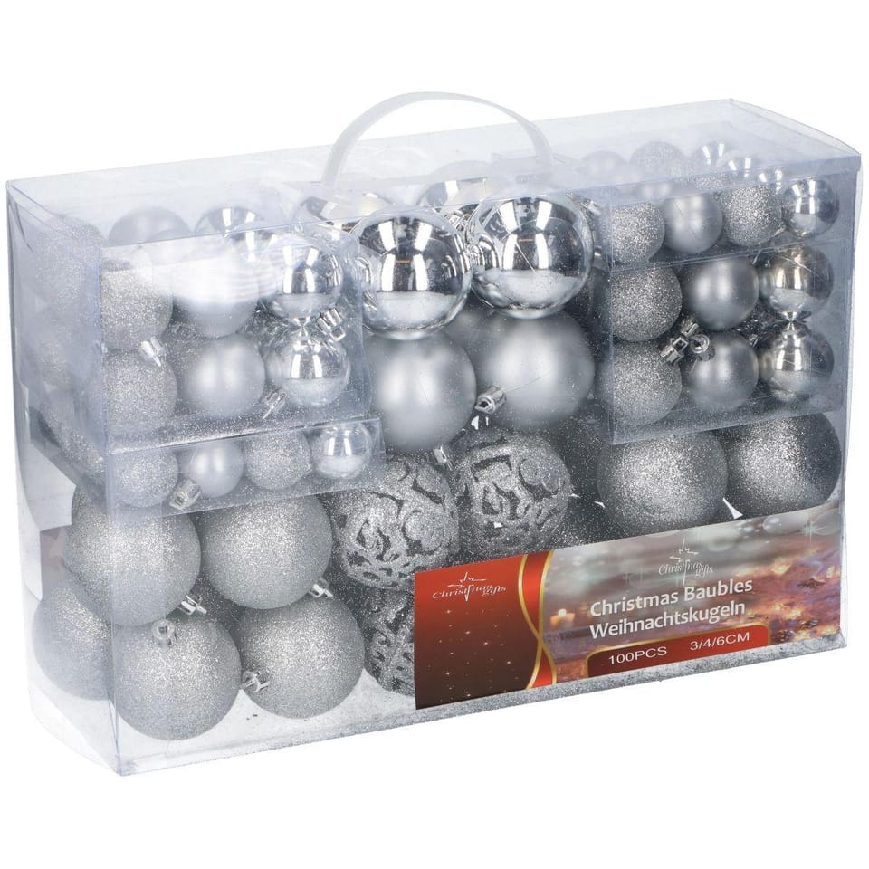 - Średnica bombek: 32 x 6 cm, 36 x 3,8 cm, 32 x 2,8 cm Ilość w zestawie: 100 szt.Rodzaje faktur: brokatowa, ażurowa, matowa, błyszczącaMateriał: tworzywo sztuczneKolor: srebrnyWymiary opakowania (plastikowe pudełko): 35 x 12 x 23,5 cm (szer. x gł. x wys.)Waga brutto: 0,576 kgMarka: Christmas Gifts