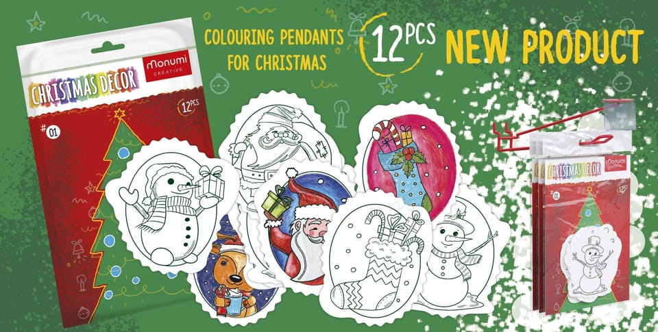Zestaw 12 bombek choinkowych Kartonowe kolorowanki dla dzieci