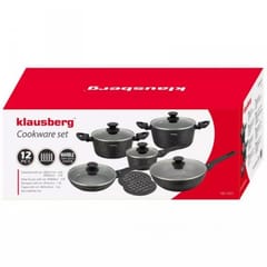 12 elementowy zestaw garnków z niezwykle trwałą powłoką marmurkową.  Ekskluzywny design spotyka się z niezrównaną funkcjonalnością, czyniąc ten zestaw idealnym rozwiązaniem dla każdego nowoczesnego kucharza.