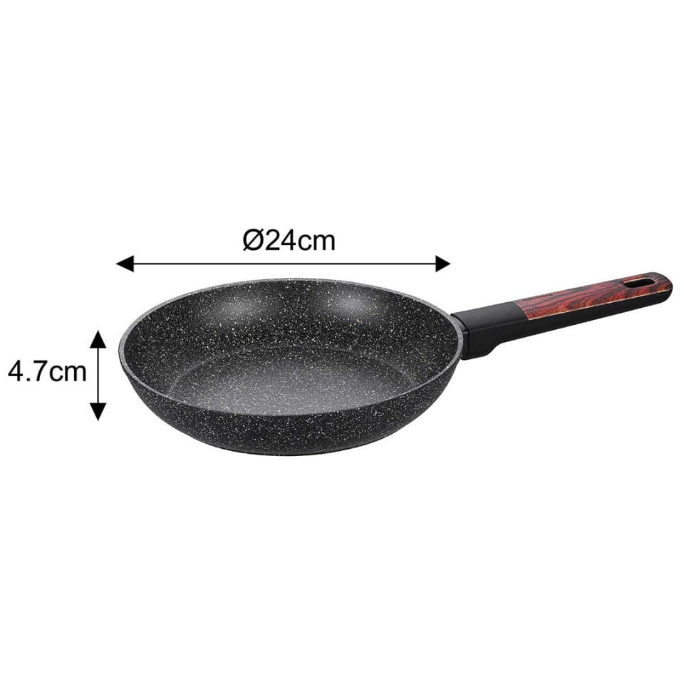 - Patelnia uniwersalna: Patelnia o wszechstronnym zastosowaniu, idealna do smażenia mięsa, ryb czy warzyw. Dzięki powłoce marmurkowej można smażyć na mniejszej ilości tłuszczu.
