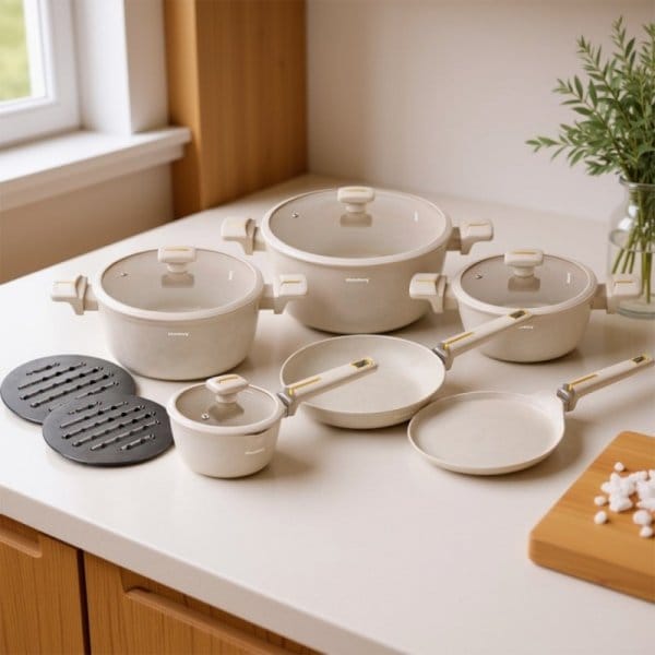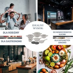 - Kompletny zestaw do codziennego gotowania i smażenia.