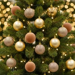 Elegancki złoty kolor pięknie komponuje się z zielenią choinki, podkreślając świąteczny charakter.