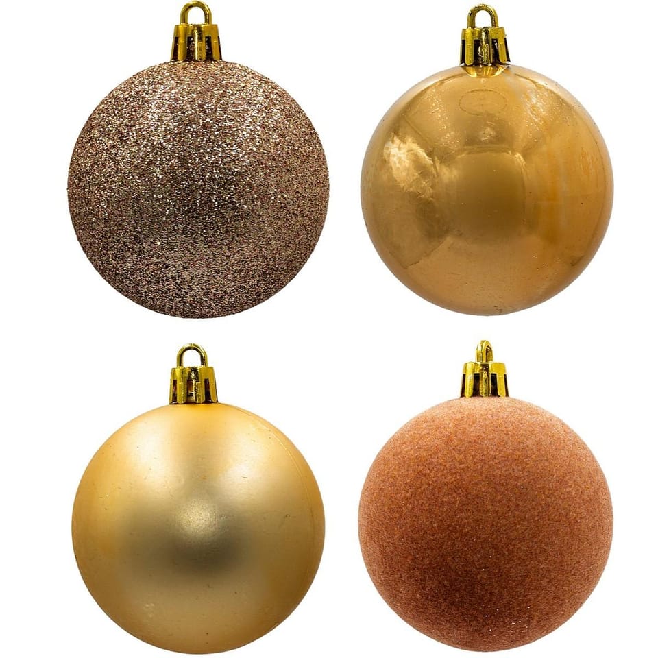 Złoto, które zachwyca! Ozdób choinkę zestawem 16 bombek w czterech luksusowych wykończeniach i stwórz świąteczny klimat jak z katalogu wnętrzarskiego.