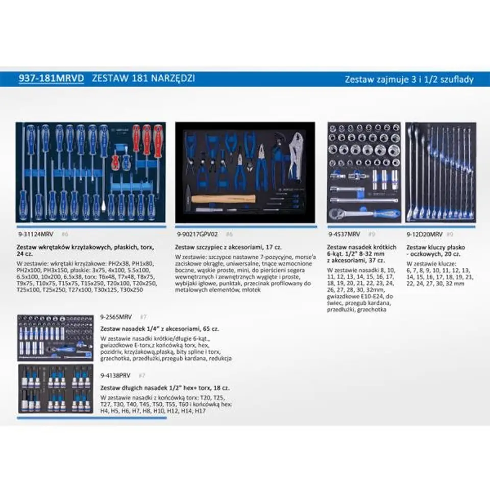 ZESTAW 181cz. NARZĘDZI DO WÓZKA PROMOCYJNEGO WKŁADY Z PIANKI) King Ton