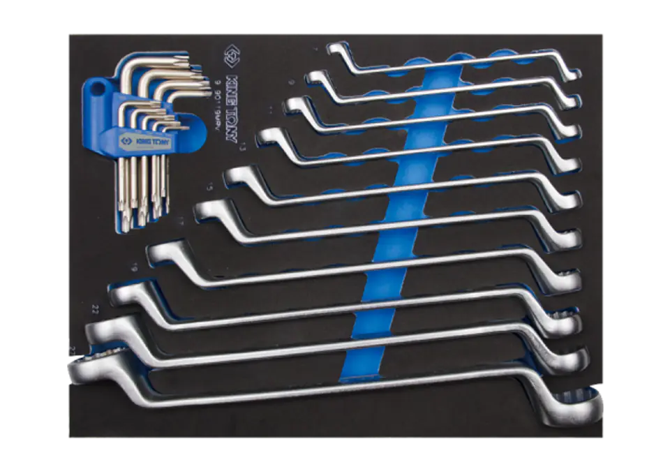 ZESTAW 19cz. KLUCZE OCZKOWO ODGIĘTE 6 - 32mm + TORX T10 - T50, WKŁAD Z PIANKI EVA DO WÓZKA King Tony