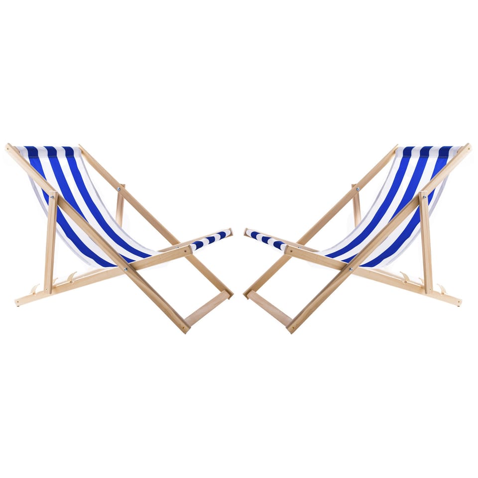 Zestaw zawiera- Zestaw 2 leżaków, niebieskie pasy, złożone Woodok