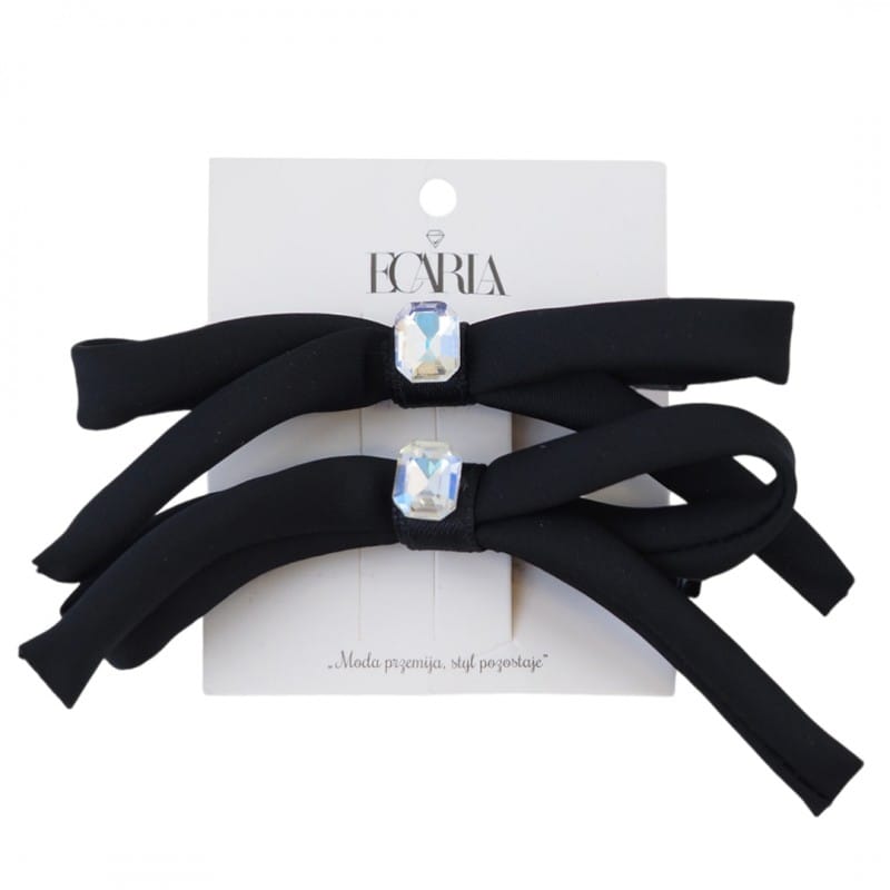 Zestaw 2 spinek do włosów czarne kokardki z kryształkiem XL 10 cm SP339