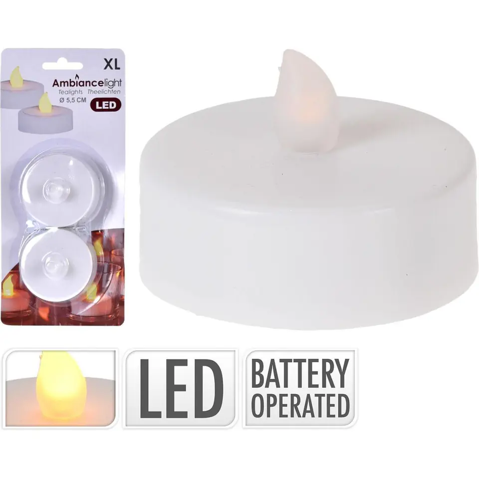 Stwórz niepowtarzalny klimat w swoim domu z ZESTAWEM 2 ŚWIECZEK JUMBO 58MM TEA LIGHT LED. Te lampki z tworzywa sztucznego będą świecić przez długi czas i kiedy tylko zechcesz, będą ciekawym uzupełnieniem Twojego wnętrza!