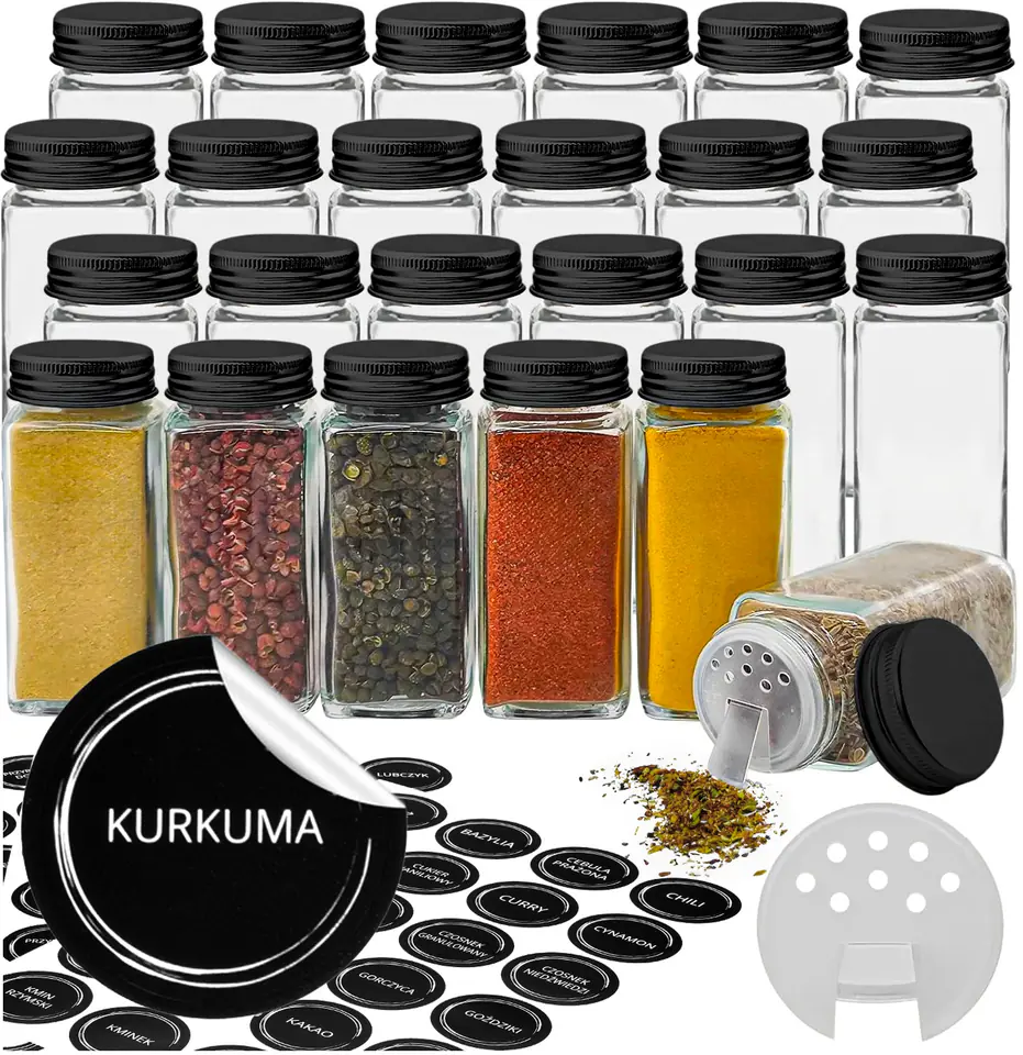 Zestaw 24 słoiczków na przyprawy BAKERPrzeznaczenie: na przyprawy | Ilość naklejek: 72 Elegancki zestaw słoiczków na przyprawy z przezroczystego szkła i czarnymi metalowymi nakrętkami ułatwia organizację i dodaje elegancji kuchni. Zawiera 24 słoiczki o pojemności 120 ml każdy, wyposażone w praktyczne naklejki z nazwami przypraw. Dzięki możliwości ułożenia na płasko lub pionowo, zestaw jest wyjątkowo funkcjonalny i dopasowuje się do indywidualnych potrzeb użytkownika. ✔️Zalety✅Wysoka jakość materiałów: Użycie szkła i metalu gwarantuje trwałość oraz bezpieczeństwo użytkowania✅Elegancki design: Przezroczyste szkło z czarnymi nakrętkami pasuje do każdego wnętrza, dodając mu stylu i elegancji.✅Duża pojemność: 24 słoiczki o pojemności 120 ml każdy, zapewniają wystarczająco dużo miejsca na wszystkie niezbędne przyprawy.✅Wygodne użytkowanie: Możliwość ułożenia słoiczków na płasko lub pionowo pozwala na łatwą organizację przestrzeni kuchennej.✅Naklejki z nazwami przypraw: Ułatwiają szybkie odnalezienie potrzebnej przyprawy, co znacząco poprawia komfort użytkowania.✅Optymalizacja przestrzeni: Idealne rozwiązanie do małych i dużych kuchni, pomagające w utrzymaniu porządku i dostępności przypraw. Zestaw ten to nie tylko praktyczny element wyposażenia kuchni, ale również elegancki dodatek, który zadowoli nawet najbardziej wymagających użytkowników ceniących sobie zarówno funkcjonalność, jak i estetykę. ✔️SpecyfikacjaMateriał: szkło, metalIlość słoików w zestawie: 24Zastosowanie: na przyprawyMożliwość ułożenia na płasko jako wkład do szuflady lub pionowo na blacie / półceKolor szkła: przezroczysty, kolor nakrętek: czarnyWaga słoika: 0,1 kgWymiary słoiczka: 4,3 x 4,3 x 10,2 cmPojemność słoików: 120 mlMożliwość mycia słoiczków w zmywarce (po uprzednim zdjęciu nakrętek) Informacje dodatkowePrzedstawione kolory należy traktować poglądowo - mogą odbiegać od rzeczywistych ze względu na różne ustawienia monitorów oraz proces obróbki zdjęć. Rzeczywiste wymiary mogą się różnić od podanych wyżej. Tolerancja błędów może wynosić +/- 5%.Marka:GockowiakKod EAN:5902340330364Ilość słoiczków:24Ilość naklejek: 72Wymiary słoiczka:4,3 x 4,3 x 10,2 cmPojemność słoiczka:120 ml