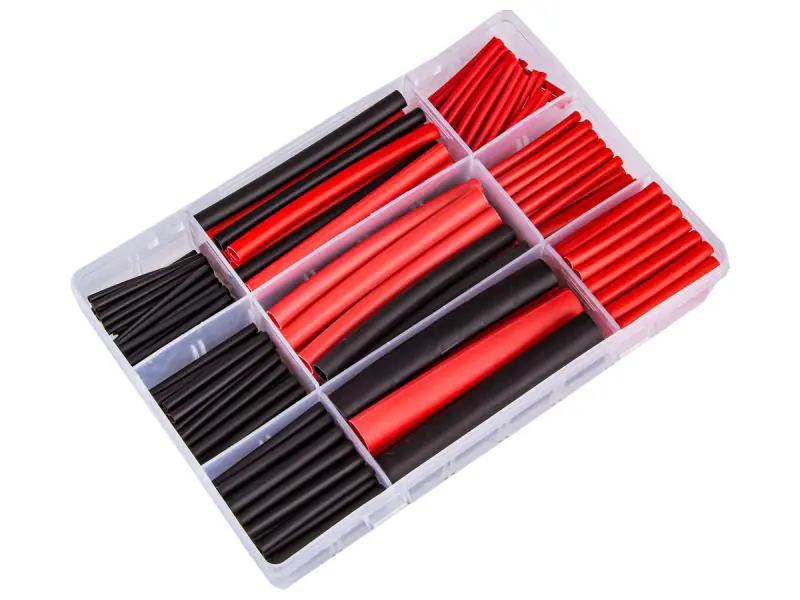 Zestaw koszulek termokurczliwych, elastycznych o grubej ściance oraz stosunku obkurczu 2:1.Charakteryzują się świetną ochroną mechaniczną oraz izolacją elektryczną. Proces montażu jest niezwykle łatwy i prosty. Zestaw zapakowany jest w poręczne plastikowe pudełko. W pudełku znajdują się przedziałki, ułatwiające segregowanie rurek.