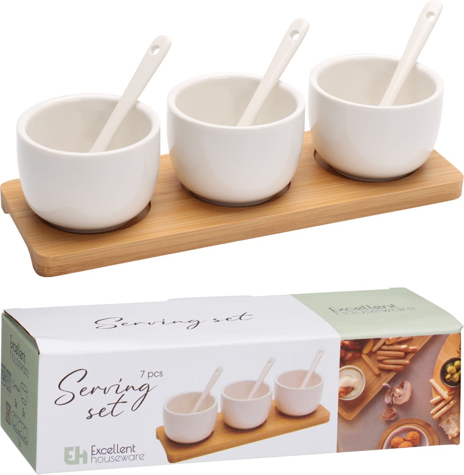 Produkt zestaw miseczek do sosów z łyżeczkami składający się z 7 elementów to funkcjonalna propozycja, która ułatwia serwowanie dodatków podczas rodzinnych posiłków i przyjęć. Wykonany z wysokiej jakości materiałów komplet charakteryzuje się dużą trwałością oraz estetycznym wykończeniem, co nadaje oprawie stołu eleganckiego charakteru. Klasyczny kształt naczyń sprawia, że produkt jest niezwykle uniwersalny i doskonale komponuje się z każdą zastawą. Zestaw sprawdzi się na co dzień jako praktyczne akcesorium, a w przypadku wykonania z ceramiki lub szkła, nadaje się do mycia w zmywarce.