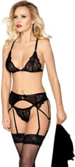 Oto zestaw bielizny 4-częściowy idealny wybór na wyjątkowe okazje, ten komplet łączy w sobie elegancję z nutą pikanterii. W skład zestawu wchodzi koronkowy biustonosz, pas do pończoch oraz figi. Zestaw wykonany jest z wysokiej jakości materiałów, zapewniających komfort i wygodę noszenia, a jednocześnie podkreślających kobiecą sylwetkę.