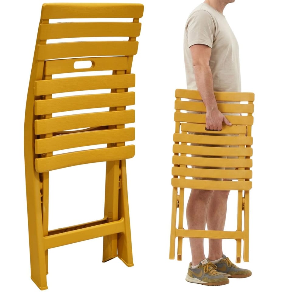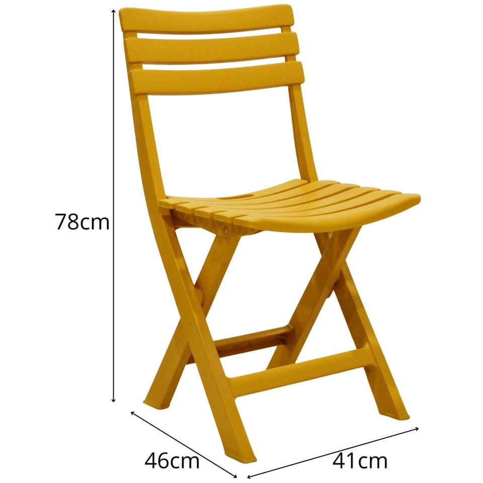 Parametry:- Wymiary krzesła: 41 x 46 x 78 cm (szer. x gł. x wys.)Wymiar złożonego krzesła ok.: 41 x 8 x 89,5 cm ( szer. x gł. x wys.)Materiały: PPKolor: beżowy Maksymalne obciążenie: 120 kgWaga krzesła ok.: 3 kgWaga netto zestawu: 11,5 kgWaga brutto: 12 kgWymiary opakowania (karton): 43 x 34 x 90 cm (szer. x gł. x wys.)W zestawie: 4 krzesłaMarka: ProGarden