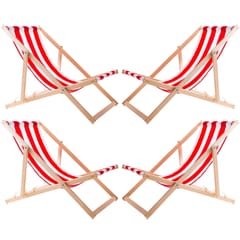 Zestaw zawiera- Zestaw 4 leżaków, czerwone pasy, złożone Woodok
