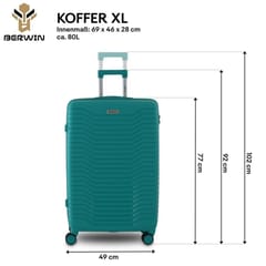 Wygodne prowadzenie zapewnia system obrotowych kółek 360°, a regulowany teleskopowy uchwyt pozwala dopasować długość do wzrostu użytkownika.Każda walizka posiada zamek szyfrowy TSA, który zwiększa bezpieczeństwo podczas lotów i odprawy bagażowej.