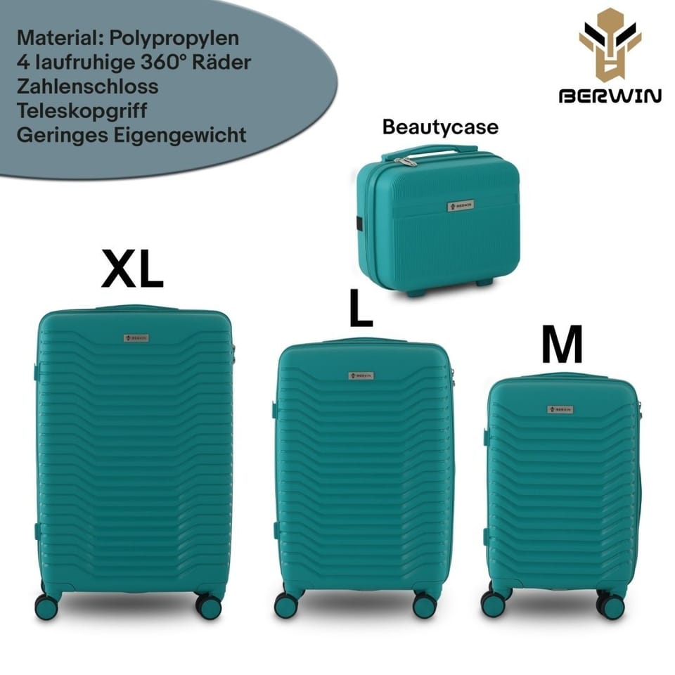 Zestaw 4 walizek podróżnych z beautycase - twarda skorupa, kółka 360°, zamek TSA