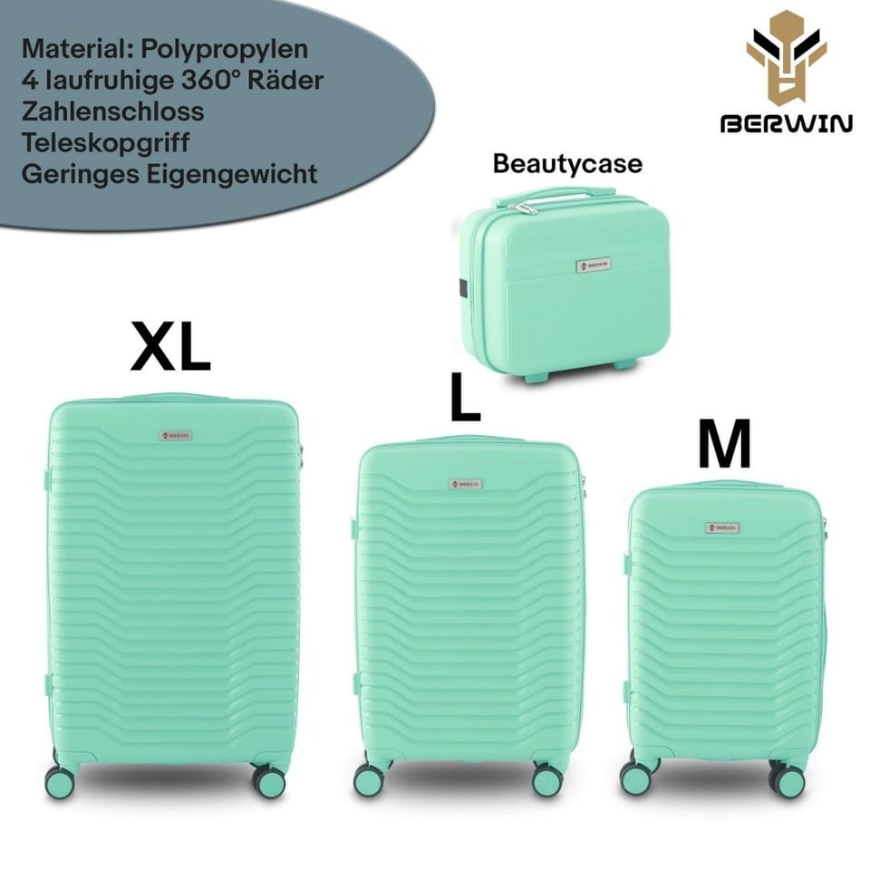 Zestaw 4 walizek podróżnych z beautycase - twarda skorupa, kółka 360°, zamek TSA