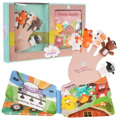 Zestaw 5 Gumowych Pacynek na palce + Książeczka Farma dla dzieci 3+ Wiejskie Zwierzątka + Wodoodporność