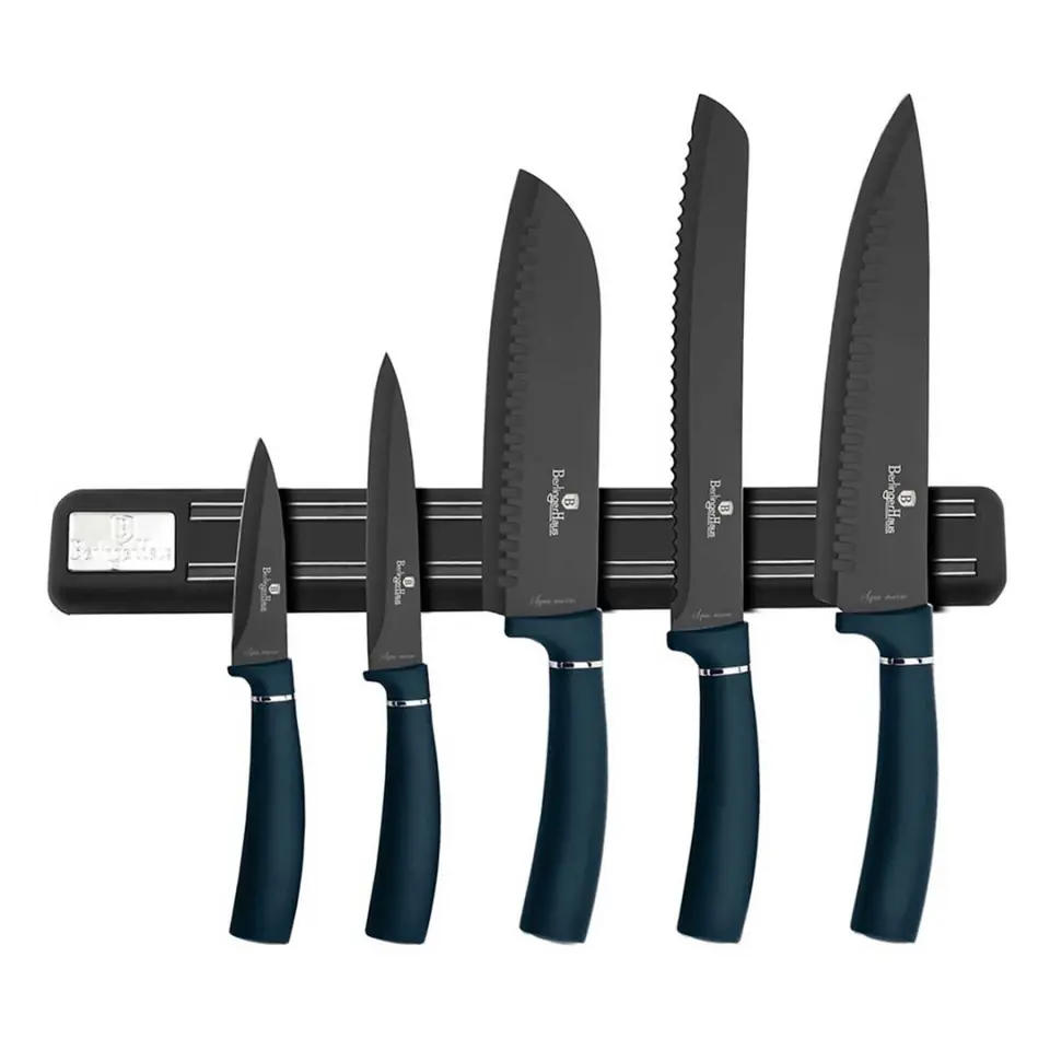 Zestaw 5 noży z listwą magnetyczną firmy BERLINGER HAUS z serii Aquamarine Collection.